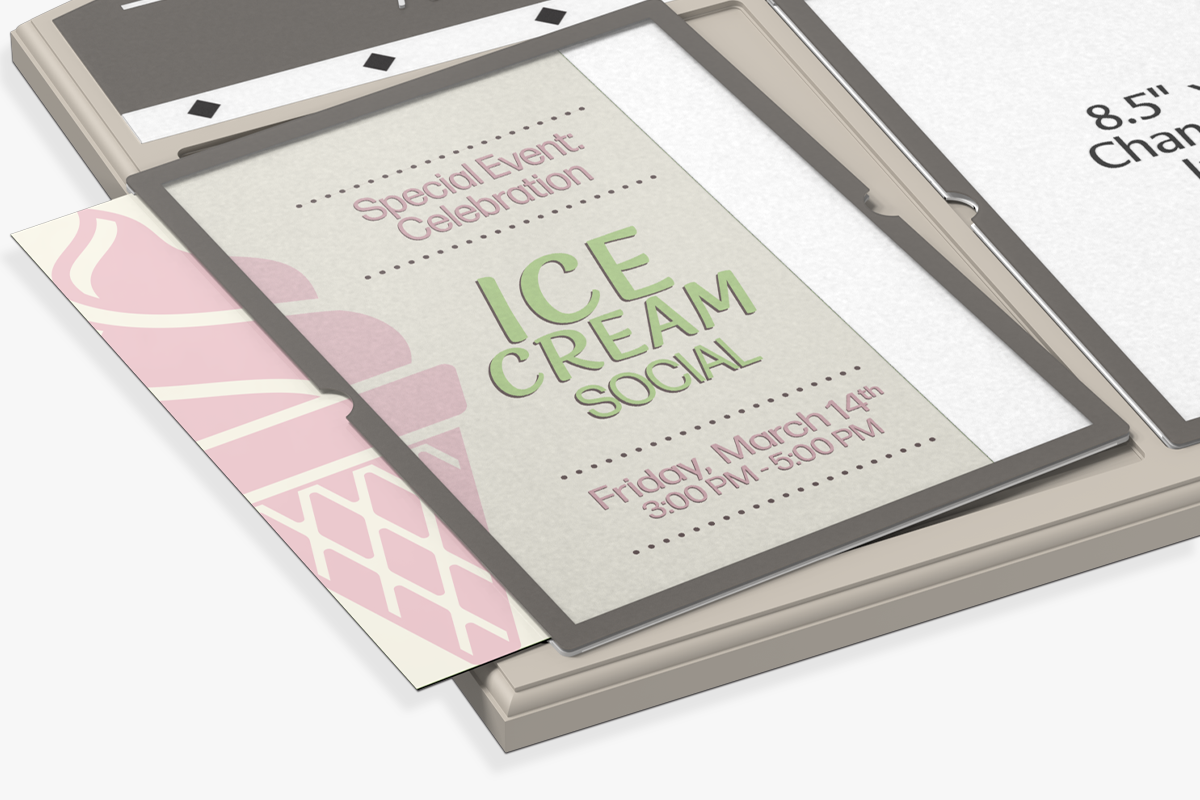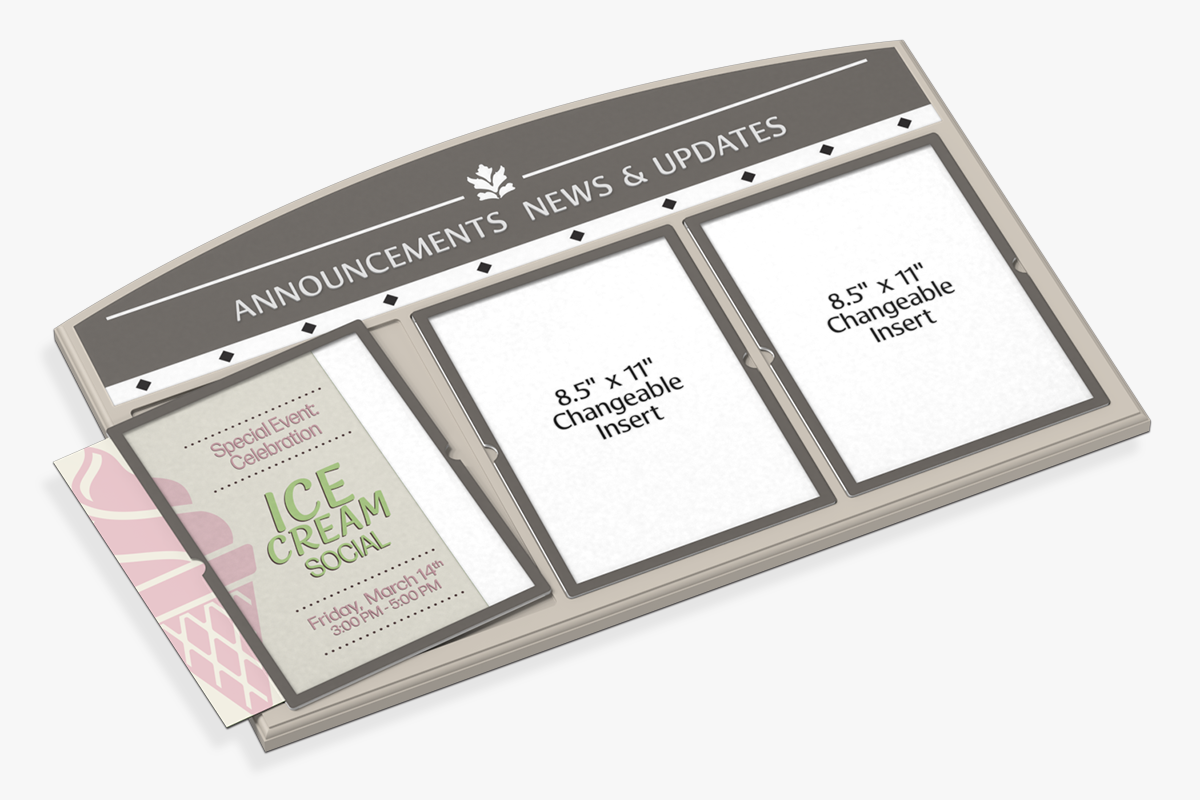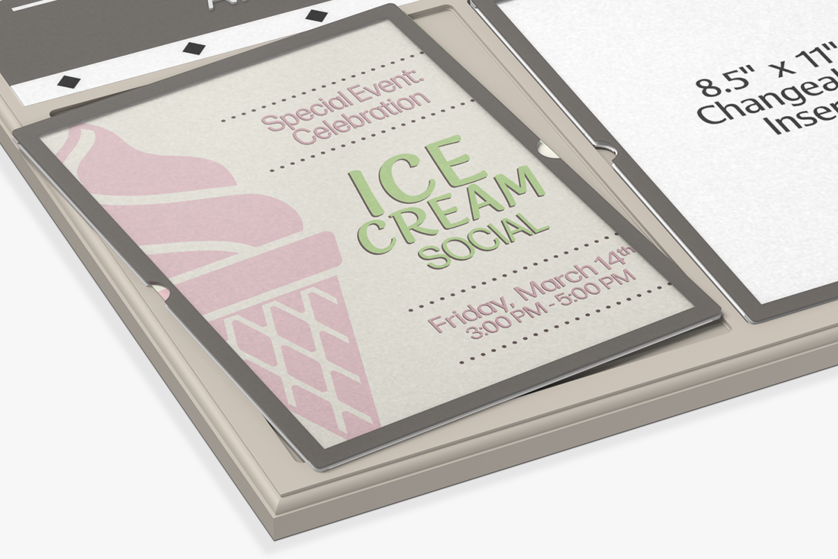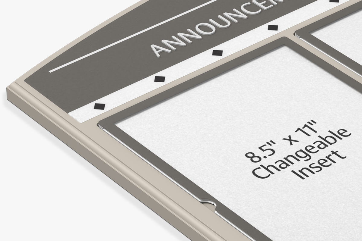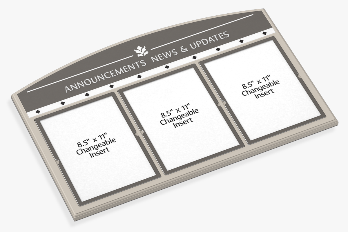 • Sign includes three insert carriers to hold three letter size sheets of paper.