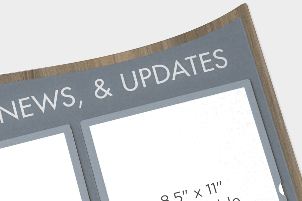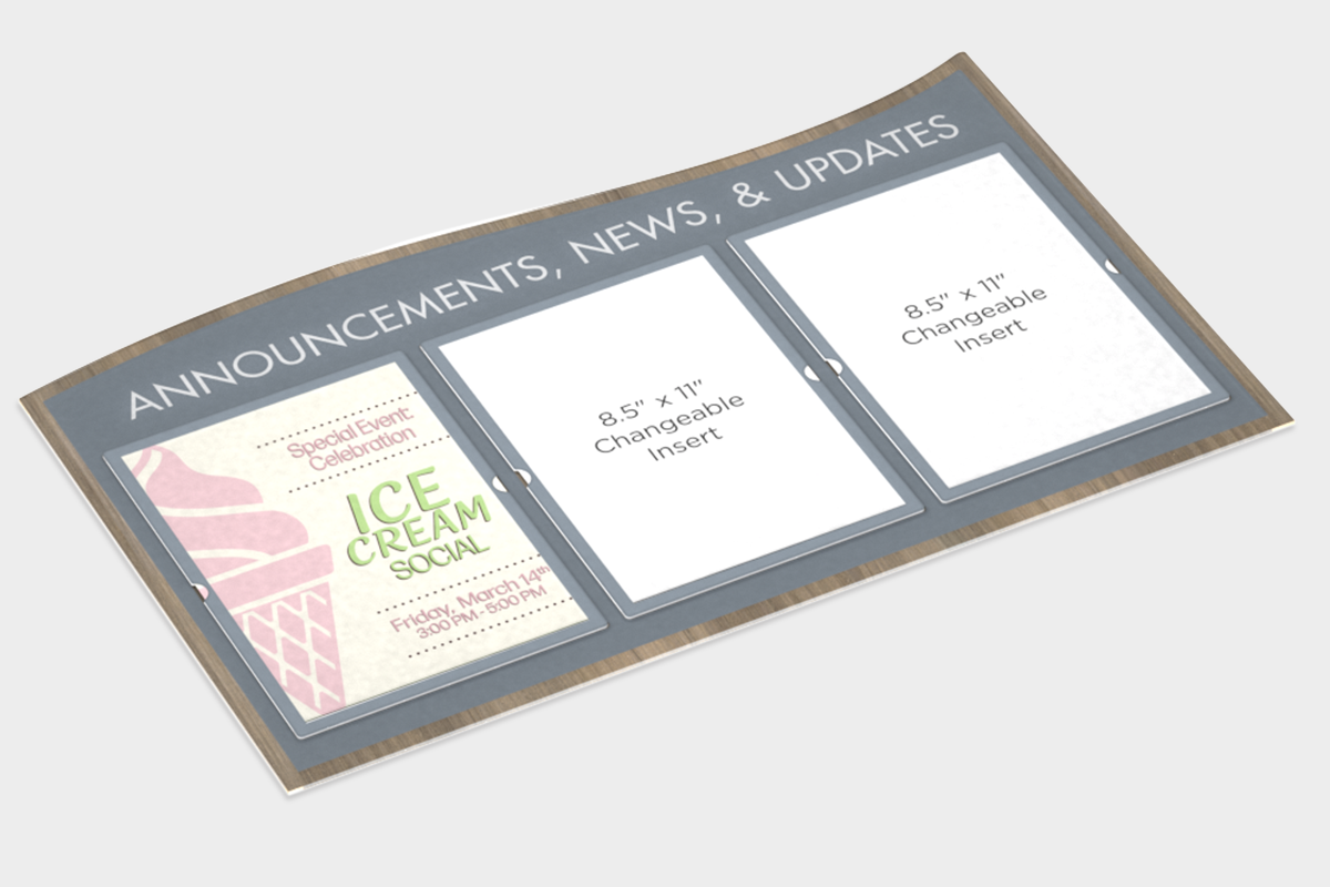 • Three insert holders with protective lens covers accommodate printed 8.5" x 11" pieces of standard paper.