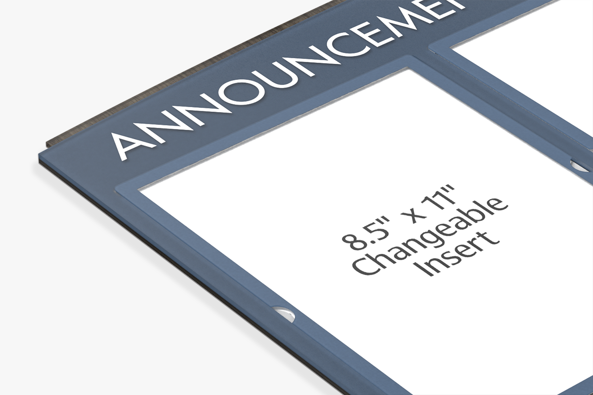 • Three insert holders with protective lens covers accommodate printed 8.5" x 11" pieces of standard paper.