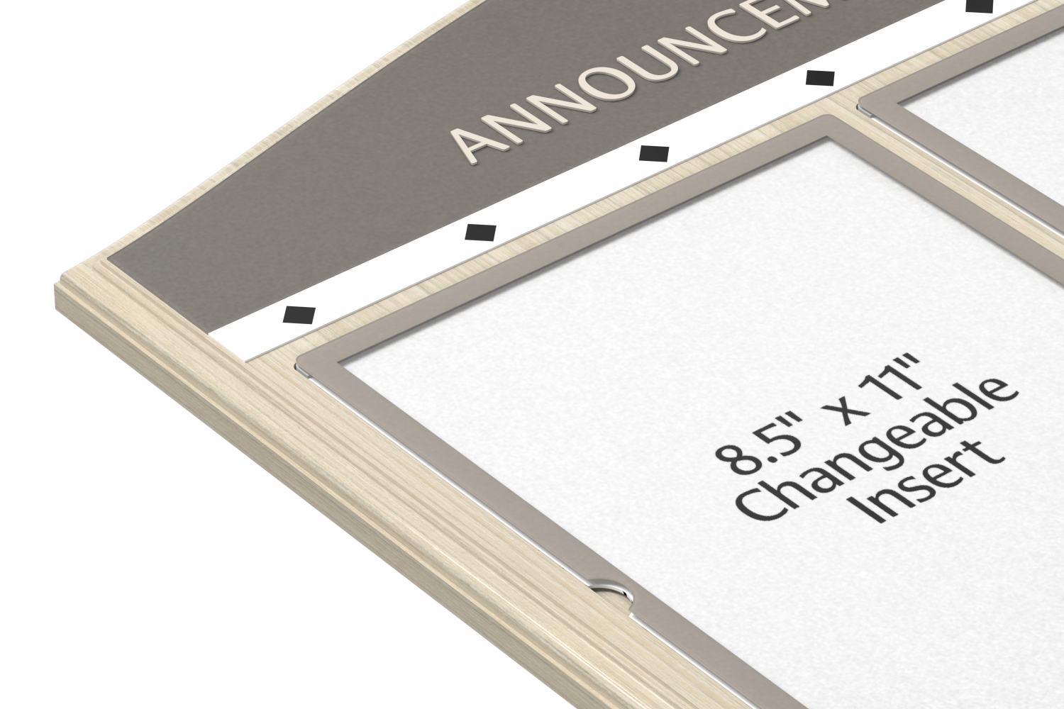 • Three insert holders with protective lens covers accommodate printed 8.5" x 11" pieces of standard paper.